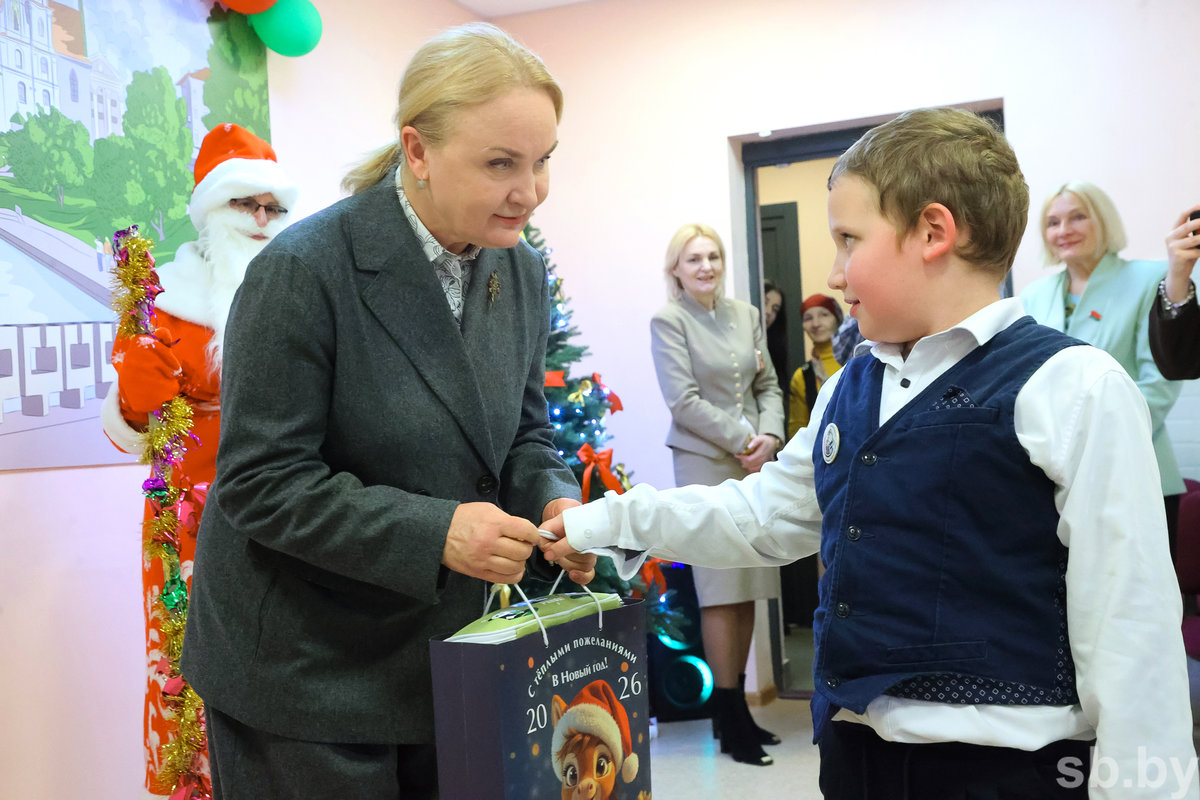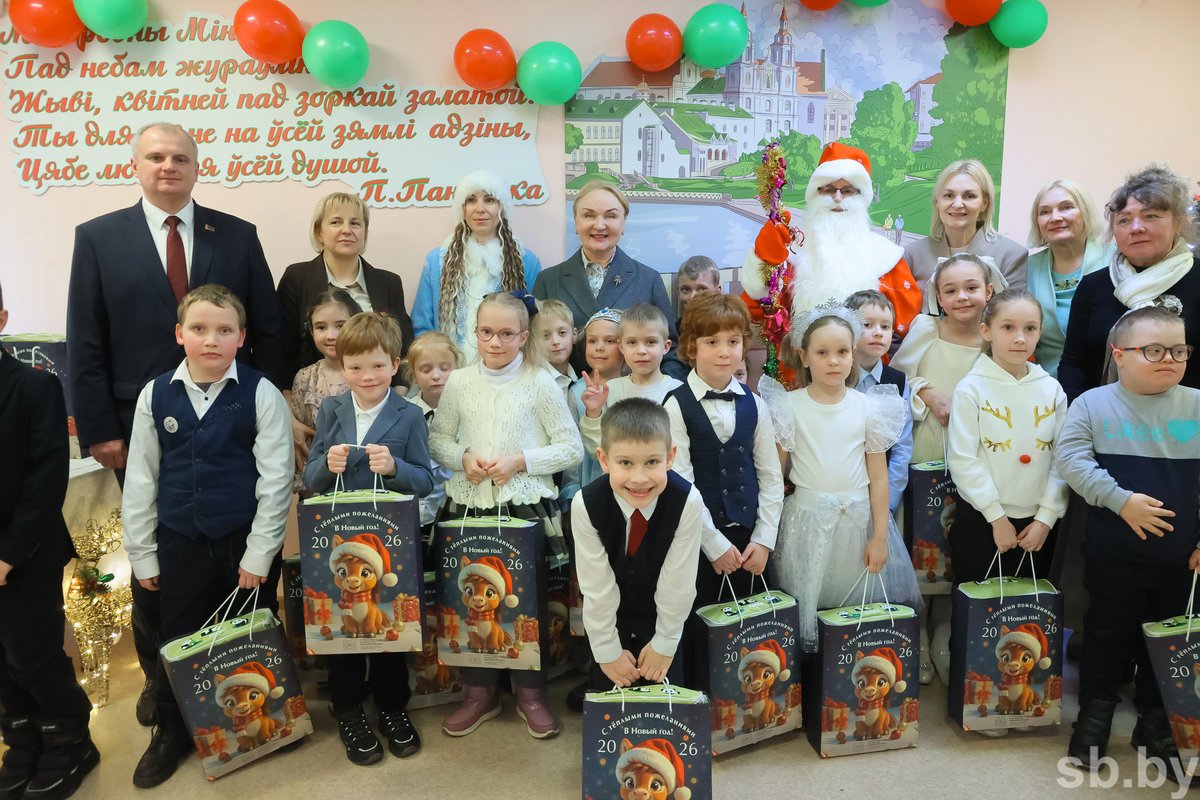 Марафон добра продолжает шагать по стране. Сегодня, 22 декабря, он заглянул в гости к воспитанникам отделения социальной реабилитации и абилитации инвалидов № 4 в Минске. Главный врач Республиканского клинического медицинского центра Управления делами Президента, член Совета Республики Ирина Абельская, а также глава администрации Фрунзенского района Минска Артем Шегидевич вручили детям подарки и поздравили их с наступающими праздниками.