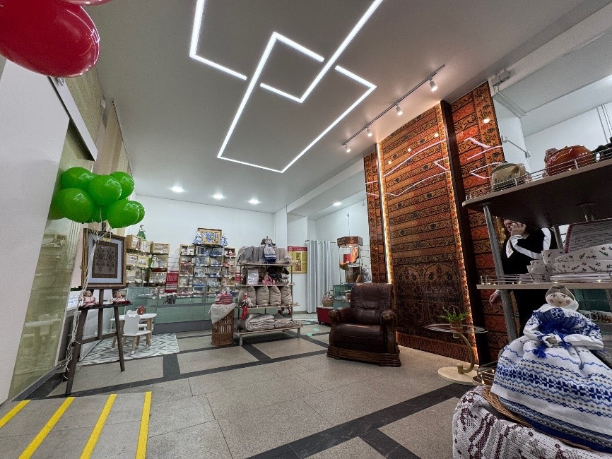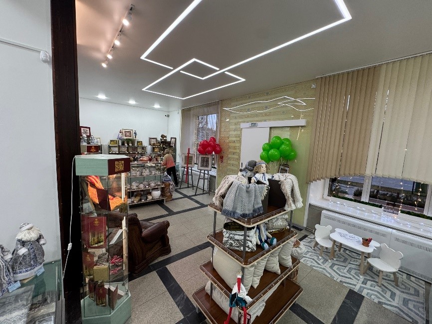 Обновлённое пространство стало светлее и современнее, изменилась и концепция торгового зала. Теперь здесь можно приобрести как основную продукцию фабрики, так и сувенирные изделия.
