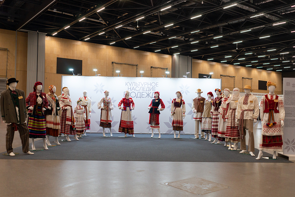 Лейтмотив выставки в этом году – «Национальная идентичность как культурный код». Площадка, которая встречает гостей колоритными национальными костюмами, оформлена специалистами УП «Скарбница» и представляет собой реконструкцию национального строя различных регионов Беларуси.