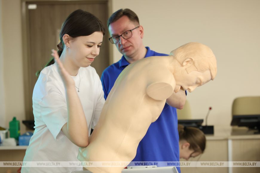 Образовательный проект "Запусти сердце" интересен десятиклассникам возможностью научиться оказывать доврачебную помощь не по учебникам, а с помощью манекенов. Таким мнением поделились с корреспондентом БЕЛТА учащиеся минских гимназий, которые 14 марта обучались в Республиканском клиническом медицинском центре Управления делами Президента Республики Беларусь.