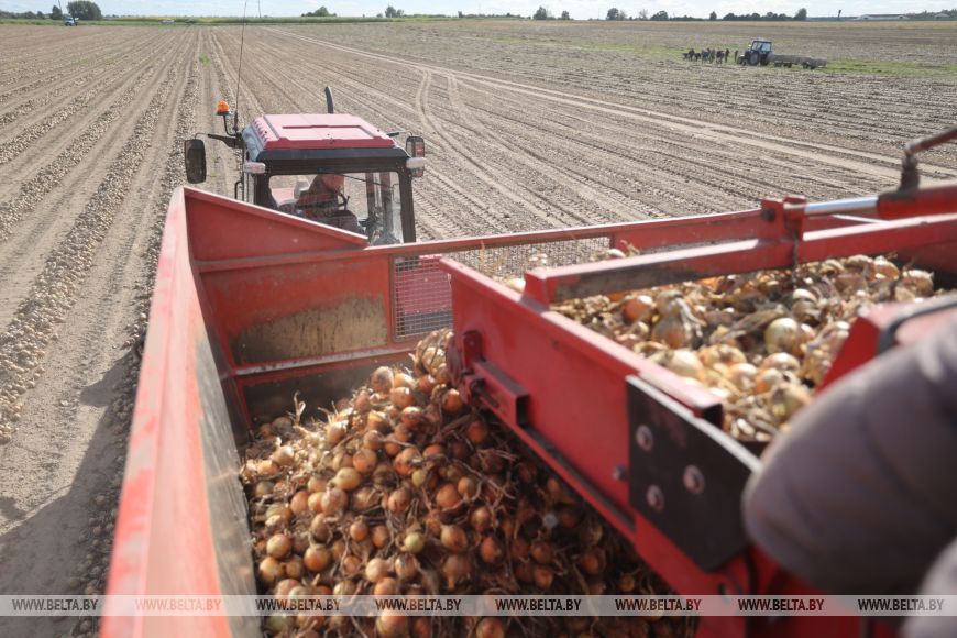 В Щучинском районе собирают урожай лука, передает корреспондент БЕЛТА.
