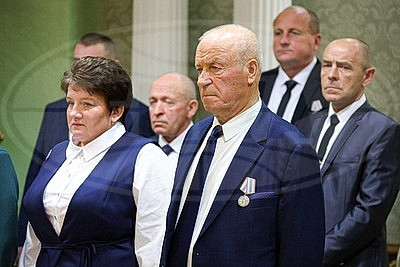 В числе награжденных сегодня работники организаций системы Управления делами Президента. Звание «Заслуженный работник сельского хозяйства Республики Беларусь» удостоен тракторист-машинист сельскохозяйственного производства ОАО «Тихиничи» Новиков Андрей Васильевич. Медалью «За трудовые заслуги» награждены оператор животноводческих комплексов и механизированных ферм ОАО «Новогородищенское» Васильева Лариса Эдвардовна, главный зоотехник-селекционер по свиноводству ОАО «Василишки» Новицкая Тэреса Антоновна и оператор по искусственному осеменению животных и птицы ГП «Восход» Чернова Евгения Юрьевна.