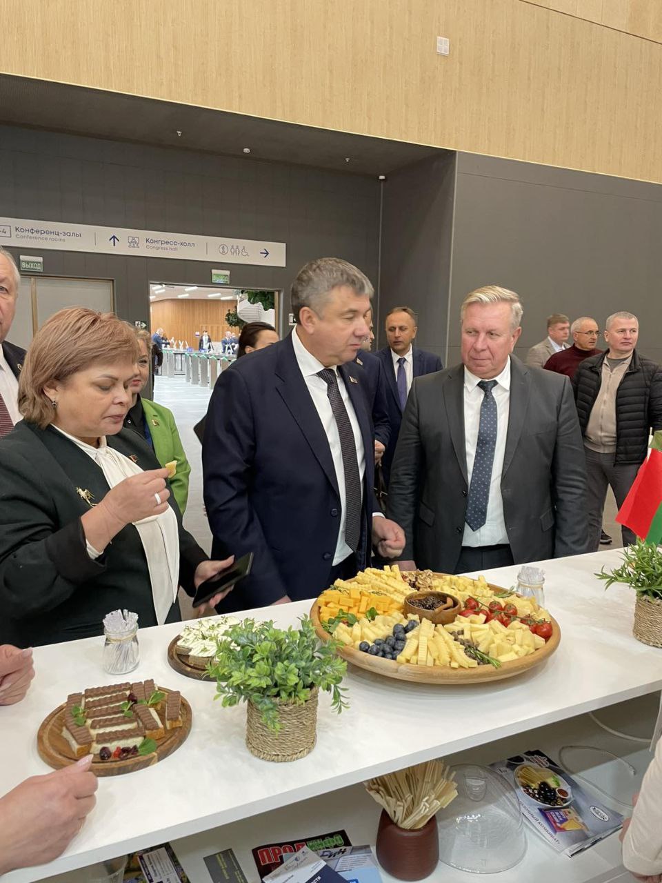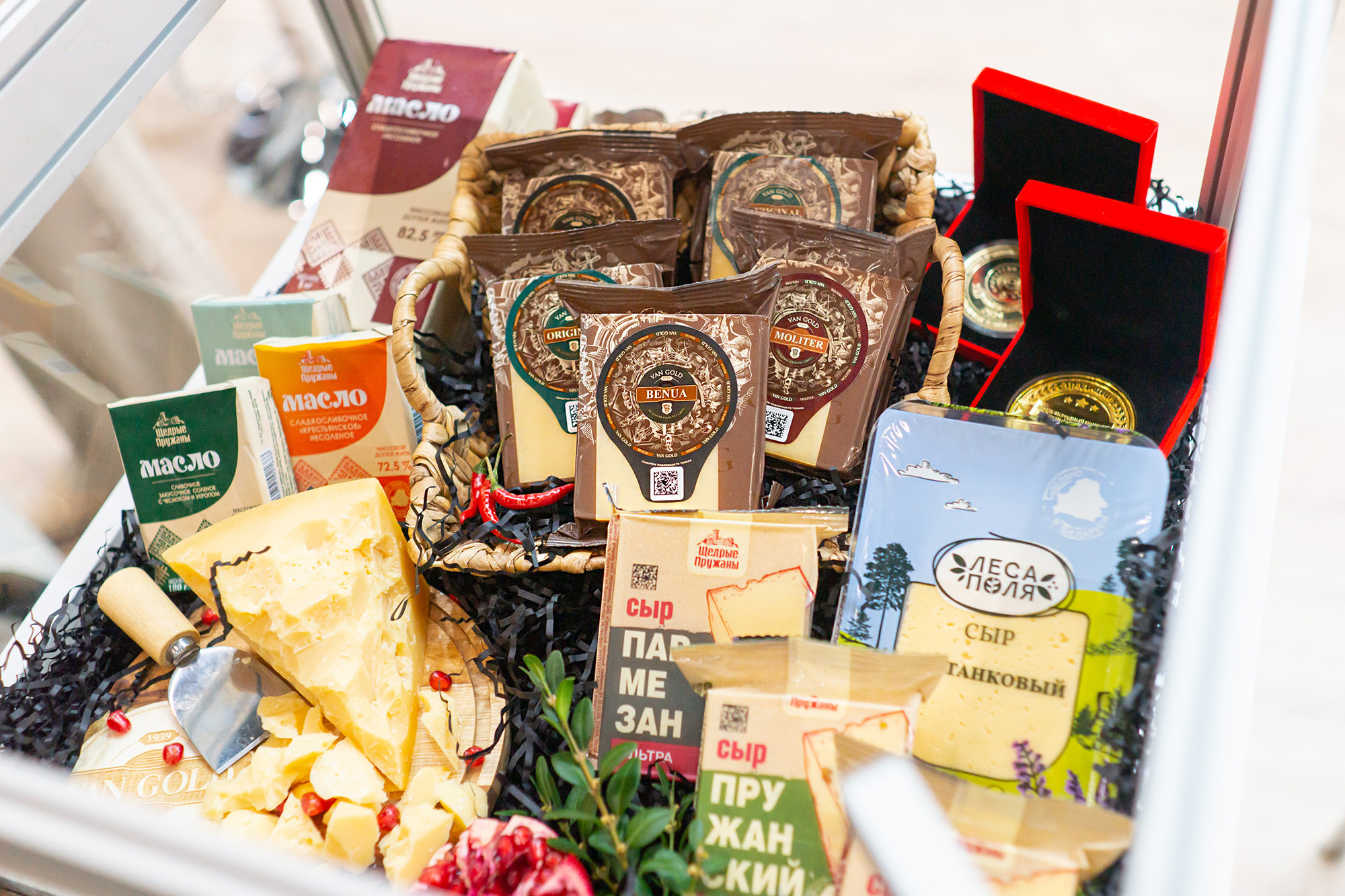 Так, Пружанский молочный комбинат презентует свое молоко, масло и сыры. Традиционно присутствуют изделия уже известных покупателям линеек «Шчодрыя Пружаны» и «ВАН ГОЛД». Особенный интерес гости выставки проявляют к новинкам молочного комбината – в этом году представлен сыр «Чеддер» под торговой маркой «ЛЕСА ПОЛЯ».