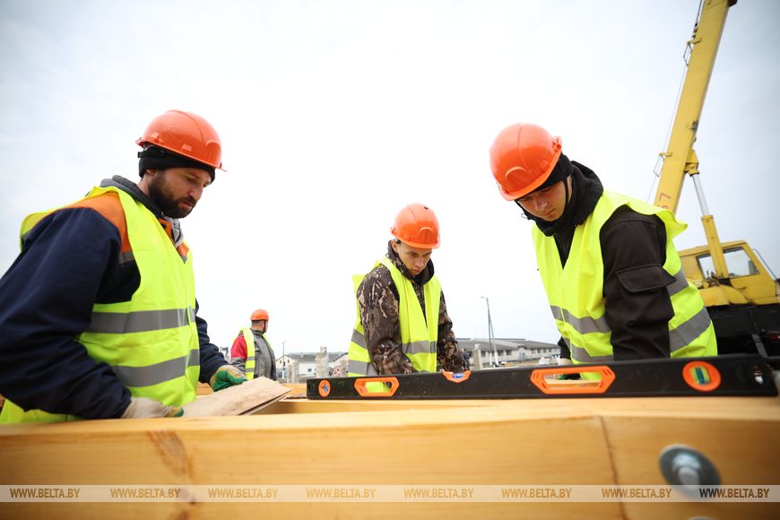 Президенту Беларуси представили проект "опытного строительства" молочно-товарного комплекса из деревянных конструкций, которые произведены из местного сырья. Глава государства поинтересовался, есть ли претензии к строителям. "Пока идем в графике", - доложил управляющий делами Президента Юрий Назаров.
