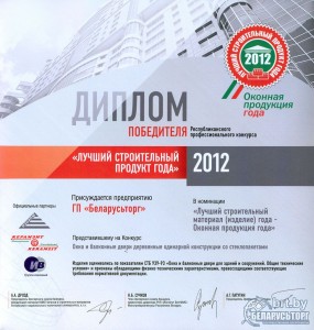 ЛУЧШИЙ СТРОИТЕЛЬНЫЙ ПРОДУКТ ГОДА 2012 - Оконная продукцияГосударственное предприятие «Беларусьторг» стало обладателем ДИПЛОМА победителя Республиканского профессионального конкурса «ЛУЧШИЙ СТРОИТЕЛЬНЫЙ ПРОДУКТ ГОДА» 2012 в номинации «Лучший строительный материал (изделие) года – Оконная продукция года».