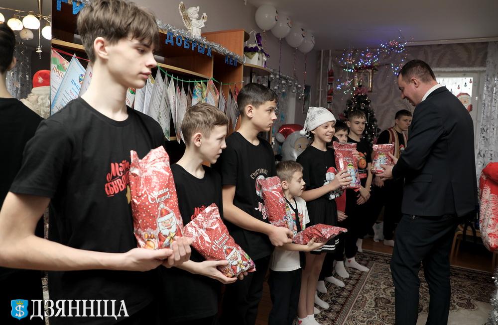 В преддверии Нового года в Тихиничском центре развития детей и отделении социальной реабилитации инвалидов Рогачевского территориального центра социального обслуживания населения принимали гостей. С праздничным визитом сюда приехал член Совета Республики, директор ОАО "Тихиничи" Юрий Васильцов.