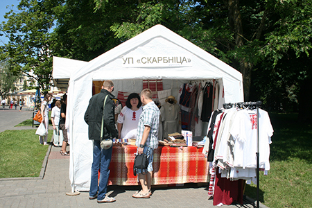 Фирменная палатка УП «Скарбница» была расположена в самом центре событий фестиваля — на пересечении Советской площади и живописной улицы Замковая.