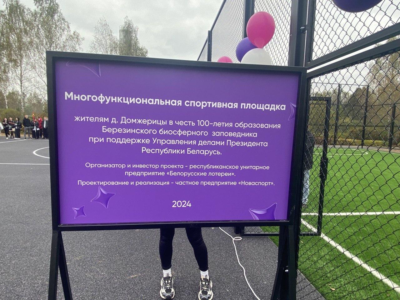 Многофункциональная спортивная площадка построена с нуля на месте старого школьного стадиона. Строительство началось с середины июля текущего года. "Это была инициатива Управления делами Президента Республики Беларусь к столетию Березинского биосферного заповедника. Был разработан целый план мероприятий, который посвящен развитию этого заповедника, - отметил заместитель Управляющего делами Президента Антон Краевский. - В первую очередь мы ввели эту спортплощадку, потому что эта инфраструктура, которая была создана именно для жителей населенного пункта". По его словам, мероприятия плана также затронут туристическую инфраструктуру.